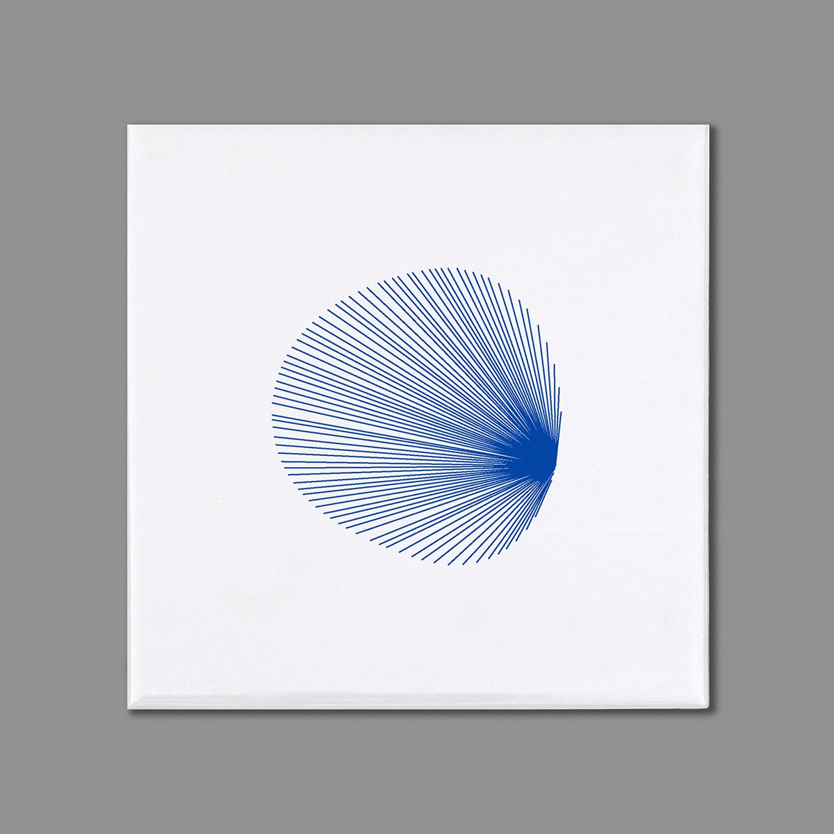 O processo de estamparia é feito através de serigrafia sobre decalque. Os decalques são aplicados um a um em cada azulejo para garantir o acabamento nas bordas.