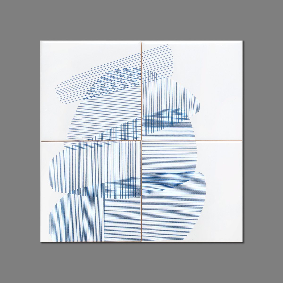 Na coleção Desenhos Partidos, o desenho original é divido em quatro azulejos. E a desconfigurarão do desenho original abre um leque de paginações únicas.